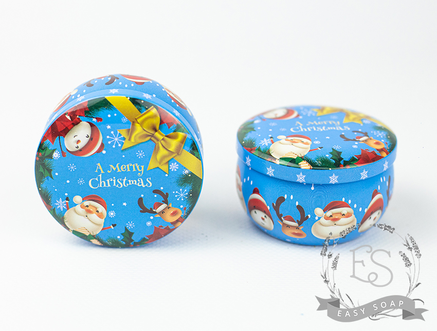 Жестяная баночка с плотной крышкой для изготовления свечей, соли, скрабов или хранения различных ингредиентов. Дизайн - новогодний.