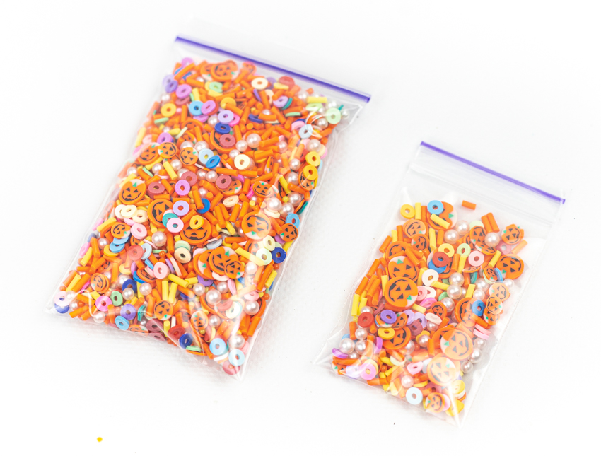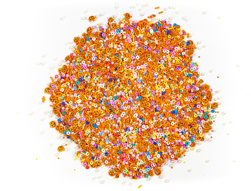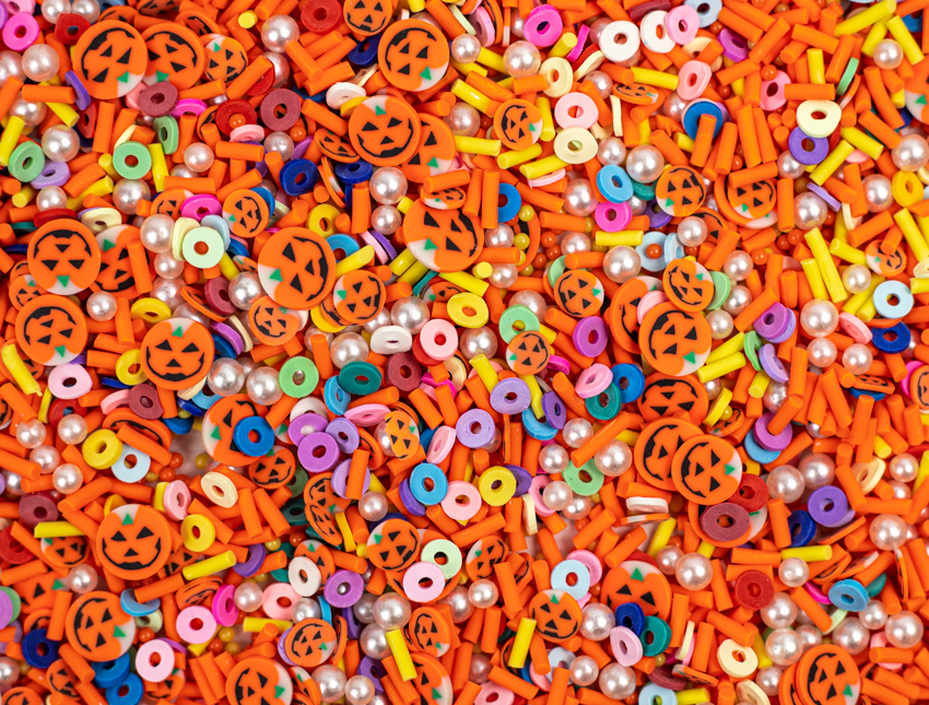Фимо – это специальные нарезанные трубочки, длинной 5 сантиметров, в диаметре около 3-5 миллиметров, с различными рисунками – тыквы Джек, кружочки, трубочки и жемчужины.