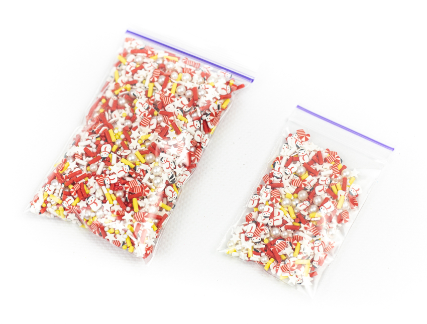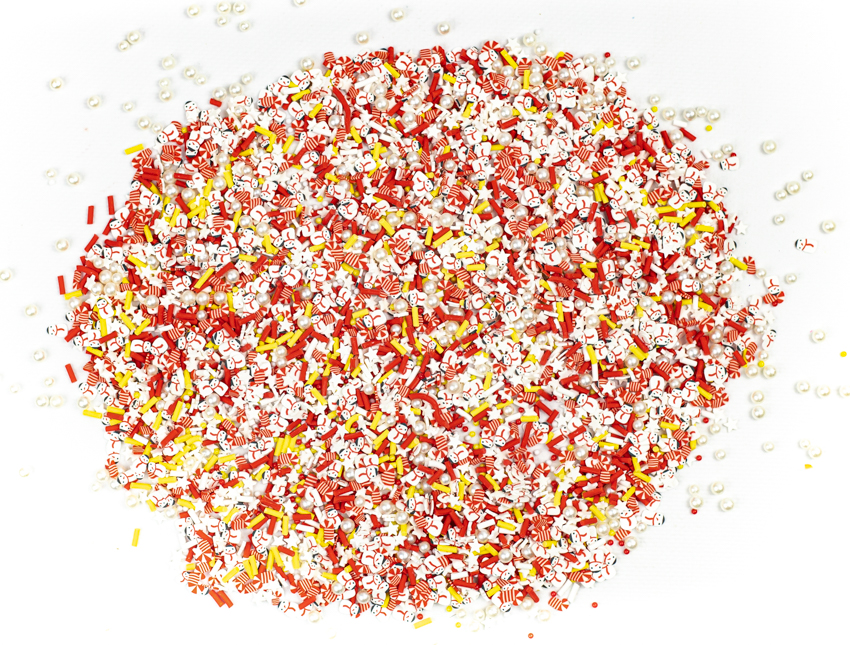 Фимо – это специальные нарезанные трубочки, длинной 5 сантиметров, в диаметре около 3-5 миллиметров, с различными рисунками – снеговики, леденцы, звезды, трубочки и жемчужины..
