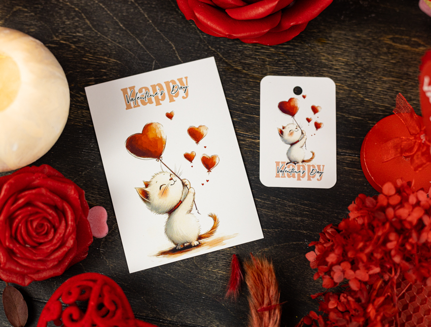 Набор открытки и бирки с праздничной надписью – стильное дополнение для подарков ко Дню влюбленных.