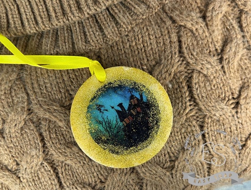 4. Приклеили водорастворимую картинку лаком, добавили немного глитера.