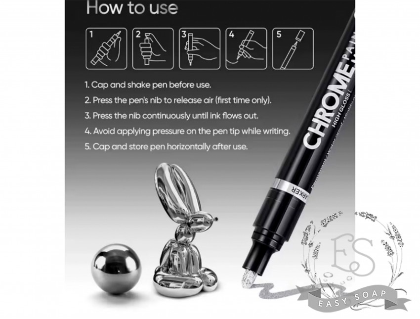 Маркер Chrome Paint — універсальний інструмент для творчості та декору, що дозволяє малювати на будь-яких поверхнях: склі, дереві, металі, пластику, папері, камені чи гіпсі.