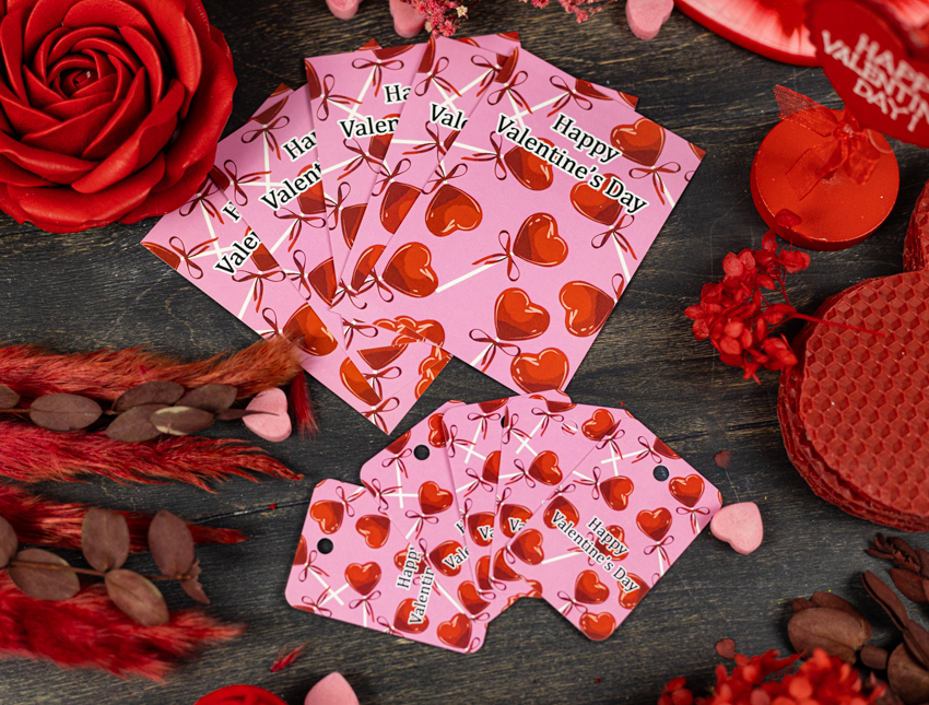 Набір листівка та бирка "Happy Valentines Day" льодяники