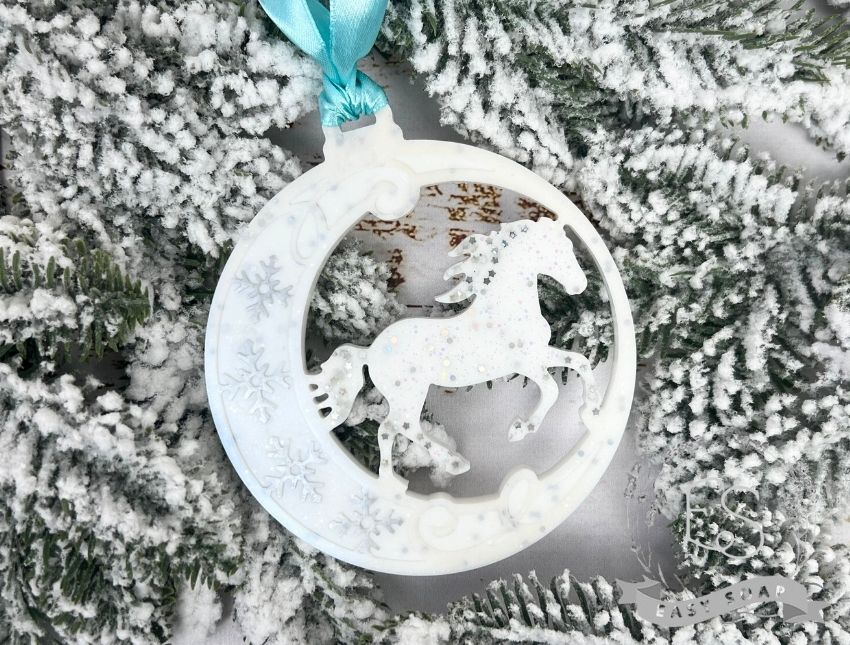 Кінь — символ прийдешнього року. Сильний, вільний, світлий. І у прозорій смолі він виглядає так, ніби застиг у морозному повітрі. Трохи блиску, трохи кольору — і вже є відчуття свята, яке хочеться зберегти
