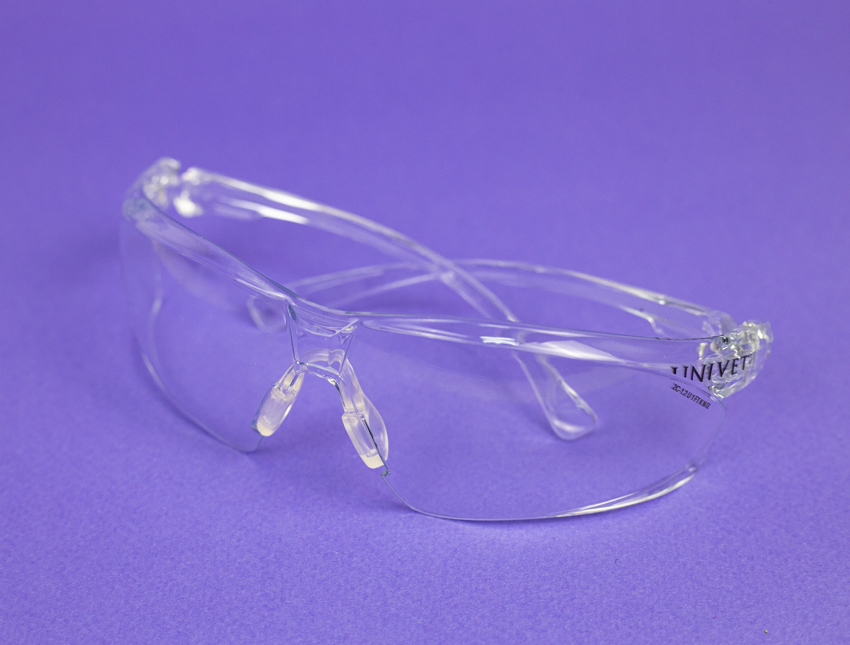 Повністю прозорі окуляри з дужками забезпечують захист та мають лінзи з покриттями проти подряпин і запотівання.