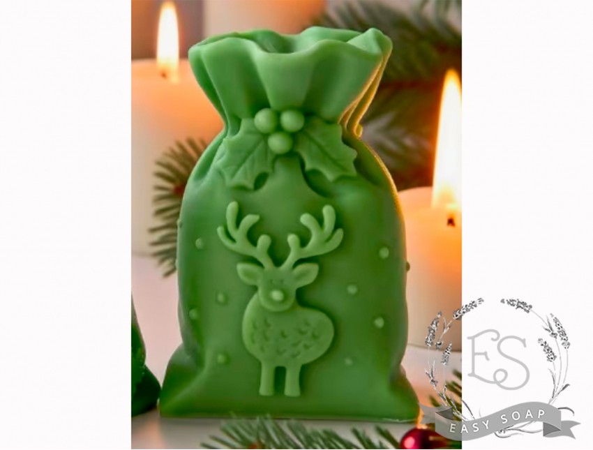 Силіконова форма "Мішечок з оленятком" 3D — гнучка та деталізована форма, що дозволяє створювати об’ємні декоративні фігурки для свічок та мила. Діаметр – 50 мм, висота – 70 мм.