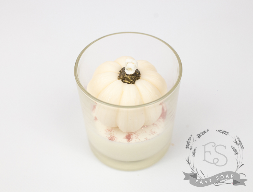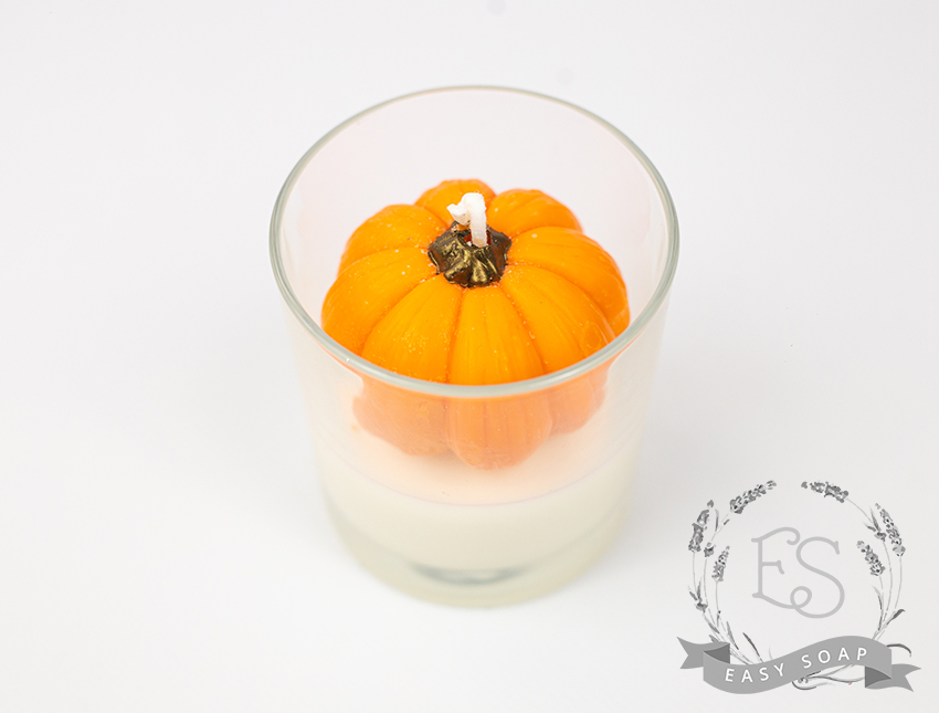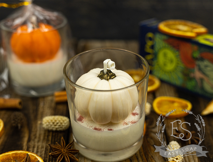 Стильний декор: гарбуз у склянці 240 мл,виконаний з соєвого віску з додаванням перламутрового пігменту додає шарму вашому інтерьєру.