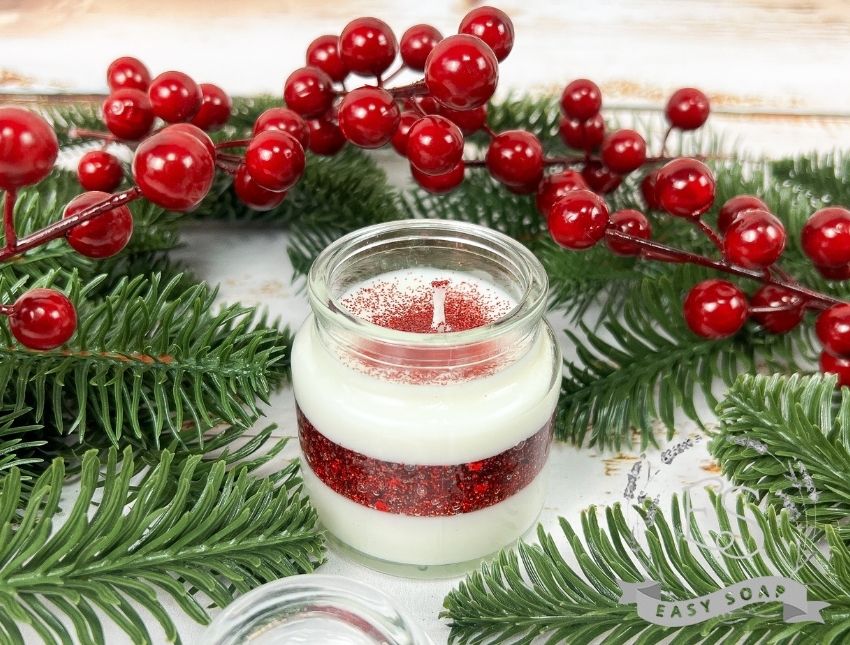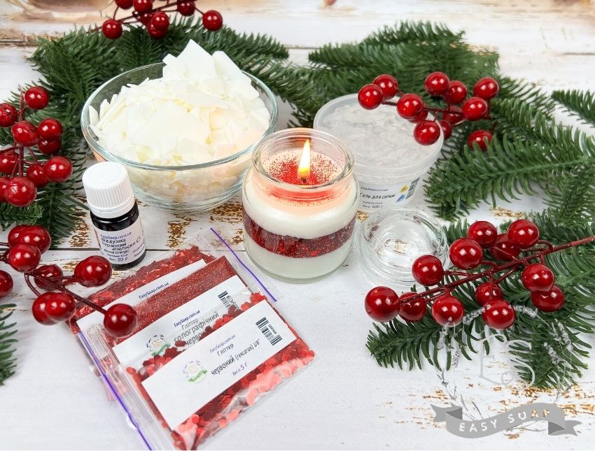 Цього разу робимо ароматну свічку у баночці з кришкою — із червоним глітером, бо ж наступний рік — рік Червоного Вогняного Коня, символу енергії, сили та пристрасті. І червоний блиск тут як ніколи доречний.