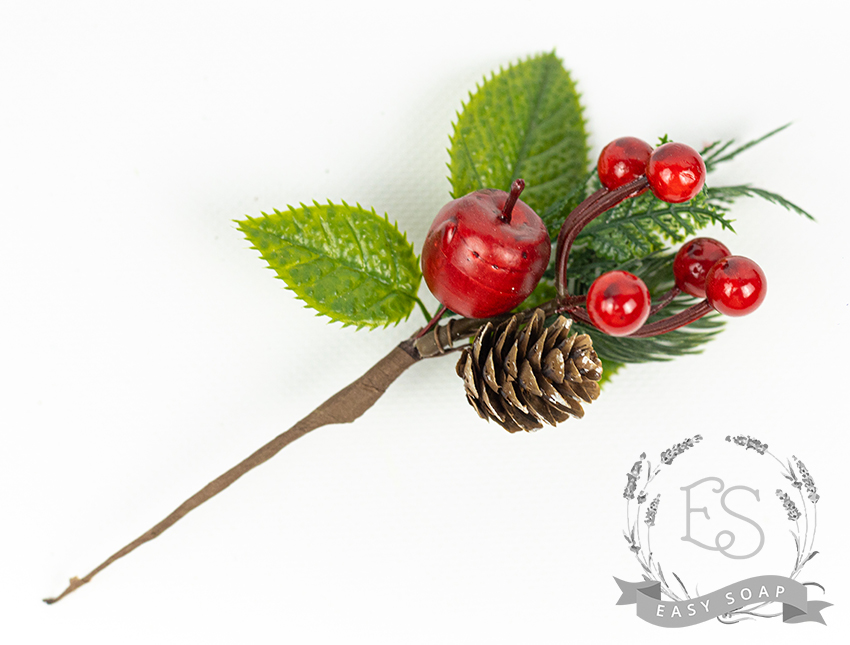 - Гілочка містить 1 яблучко, шишку, калину та листочки з голочками.